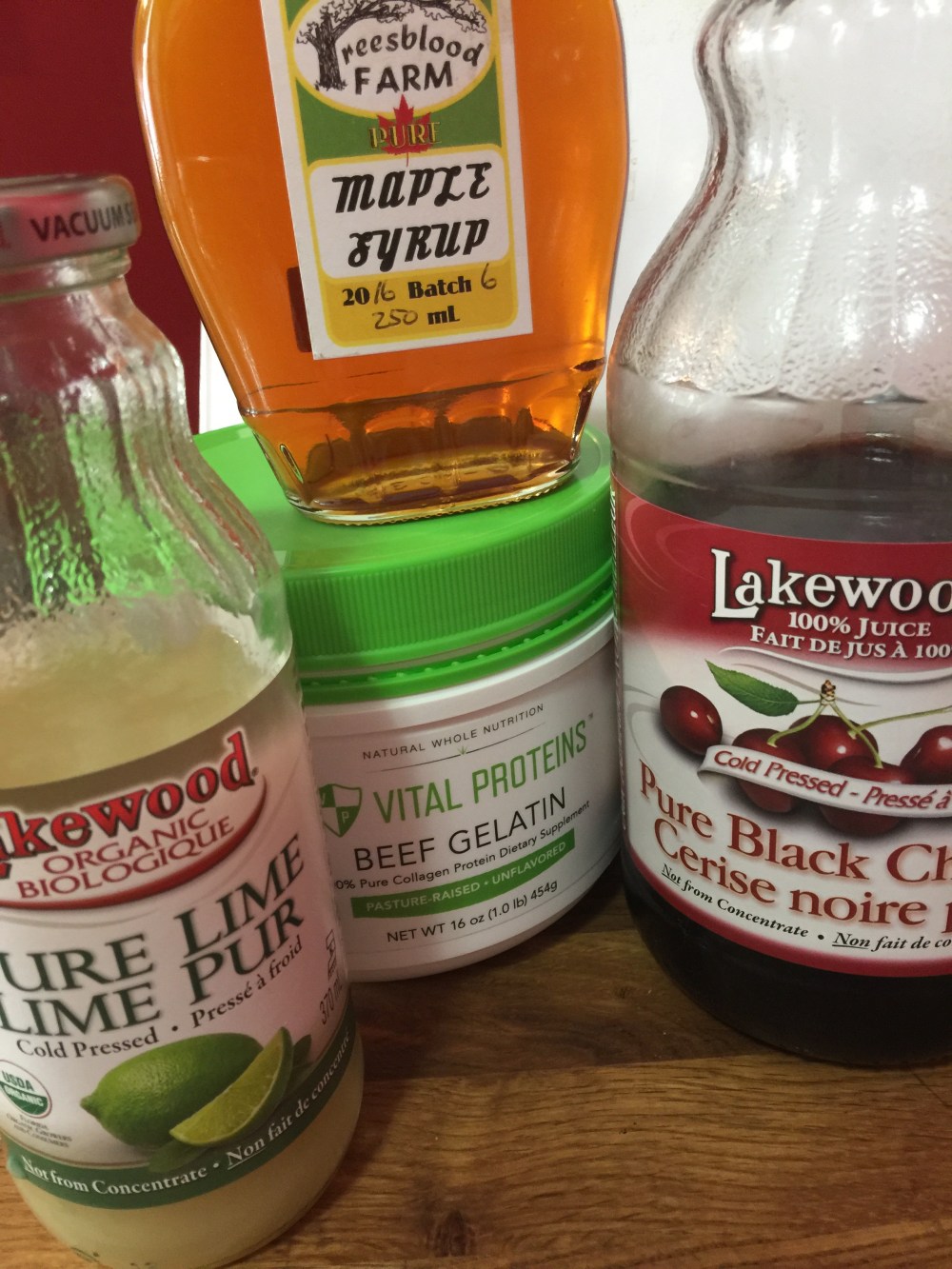 1.5 cups juice (we used cherry for one batch and apricot for the other)