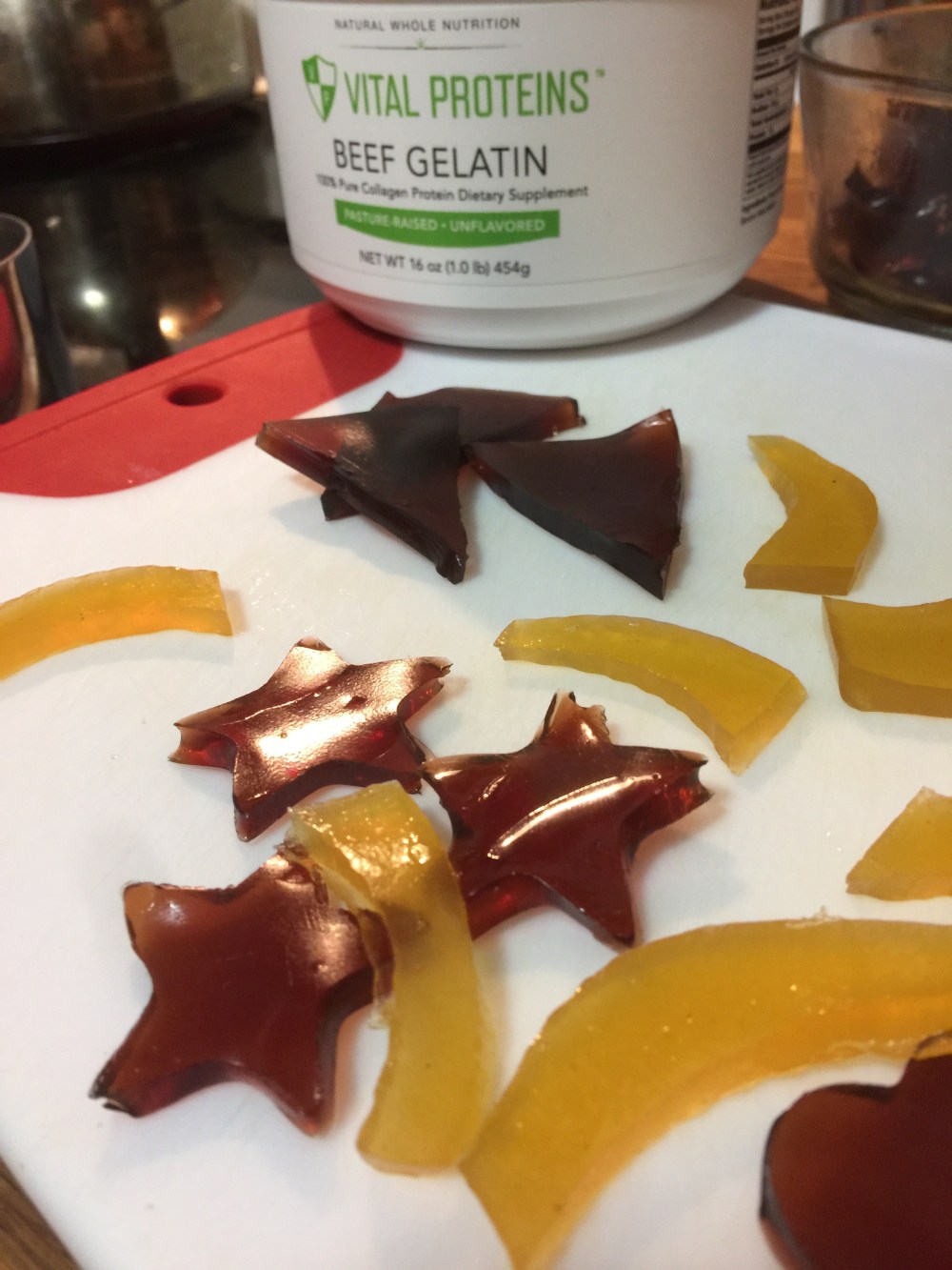 Today we talk gummy candy! The chewy awesome-ness that can be captured with one simple ingredient-gelatin!! When I was a kid, my mom used to eat gelatin because it was supposed to be good for your fingernails? What we do know is that is is very soothing for the gut! And it’s always good to have recipes with four ingredients!